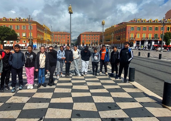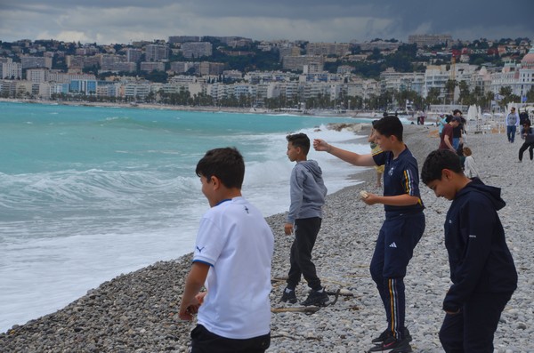 Nous nous somme rendus ensuite place Masséna, eblémùatique de Nice, pour rejoindre la Promenade des Anglais puis la plage. Les élèves ont été surpris qu'elle soit faite de galets et non de sable, mais aussi du ballet incessant des avions de l'aéroport tout proche. Ils ont pu profiter de leur repas et d'un moment de détente bien mérité après cette matinée de course.