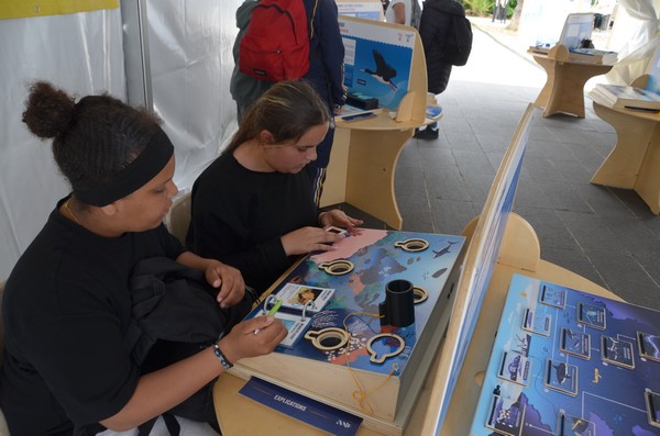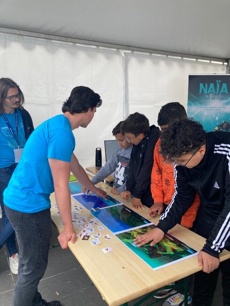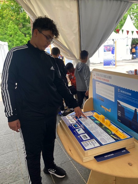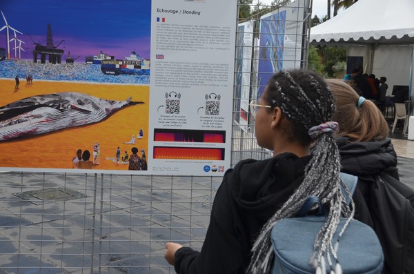- Une exposition artistique (collage de Mme Caroline Regottaz) qui donne accès aux sons qu'entendent les animaux sous la mer et sensibilise à la pollution sonore (M Adam Olivier).