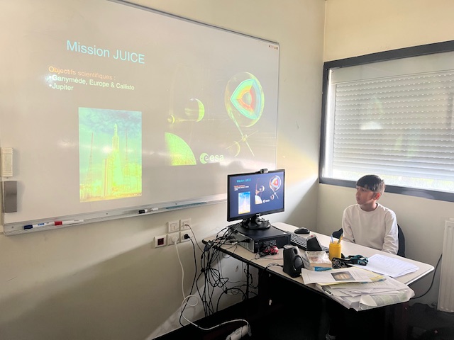 Après avoir compris le fonctionnement de l'encyclopédie collaborative, les jeunes se sont lancés dans des démarches d'investigation et de croisement de l'information. Ils ont présenté leurs premiers résultats le 20 Mars, en visio-conférence, à M. Hue, chaire d'Astrobiologie à l'Uiversité d'Aix-Marseille, travaillant au Laboratoire d'Astrophysique de Marseille, et membre des Missions Juno (NASA) ainsi que Juice (ESA) et Europa-Clipper (NASA).