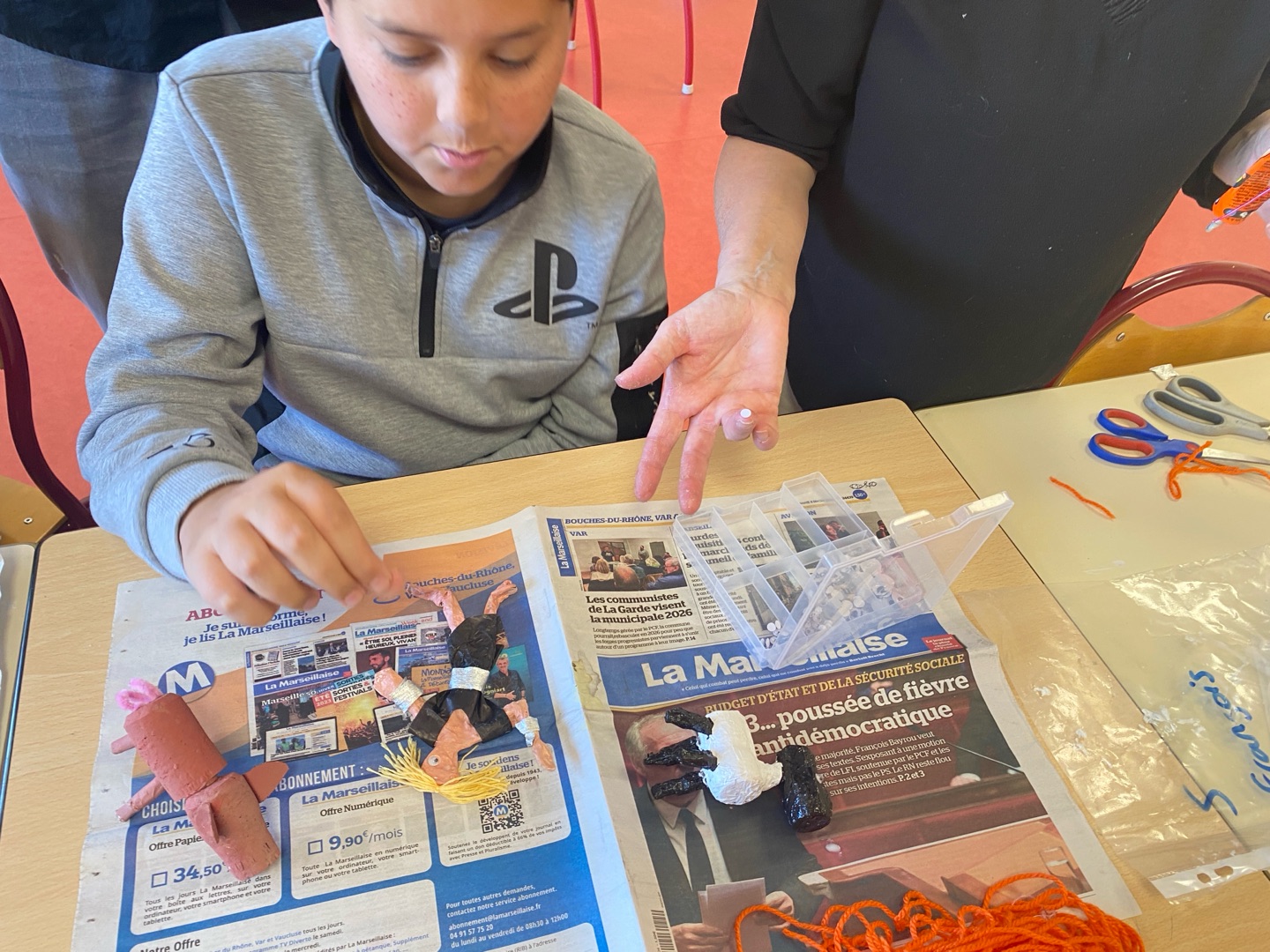 En effet, Mme Roussy leur a présenté l’histoire du Kamishibai et les a aidés à découper leur texte en plusieurs planches. Puis, grâce à la technique du papier mâché, la classe a créé de magnifiques illustrations !!